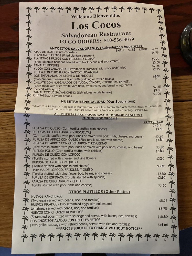Los Cocos Salvadoran Restaurant Menu (Update 2025)